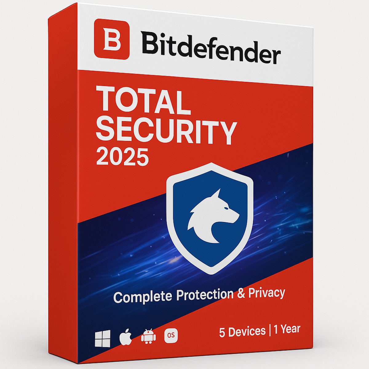 Bitdefender Total Security 2025 – activare digitală (1 an / 5 dispozitive – PC, Mac, Android, iOS)